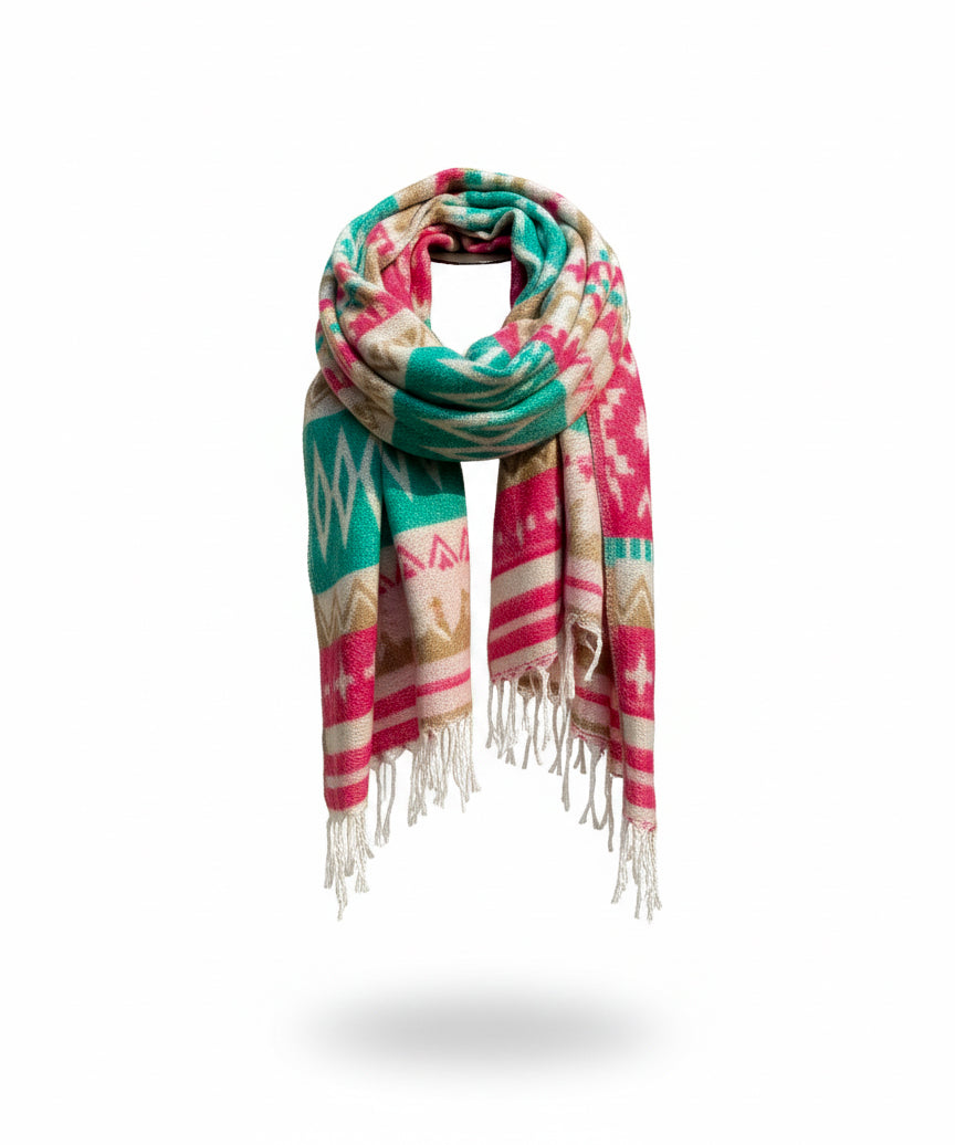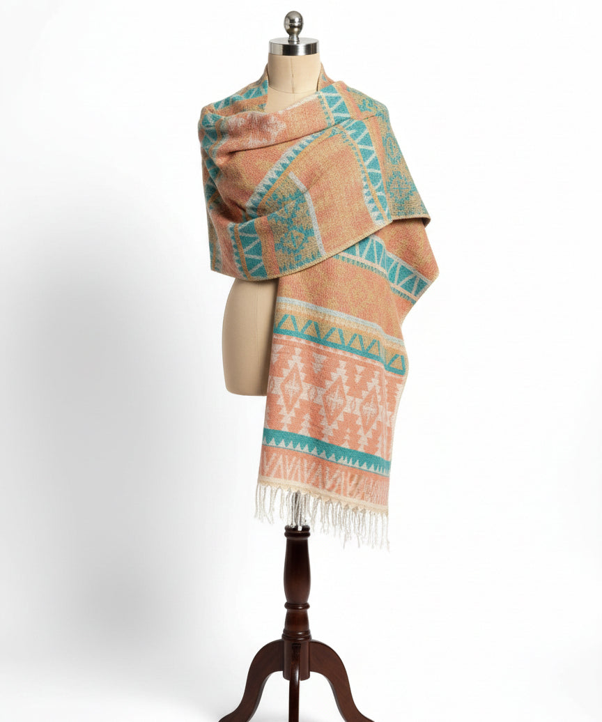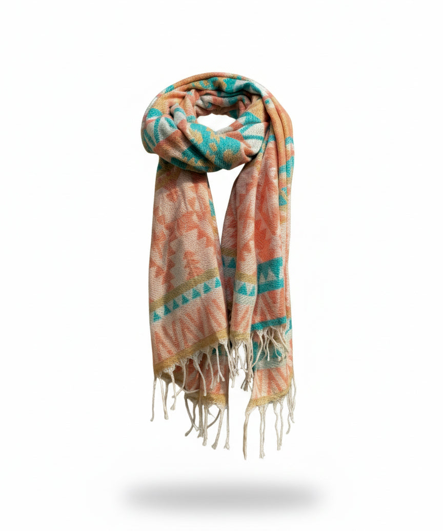 Awara Shawl - Coral Dusk & Aqua Sand