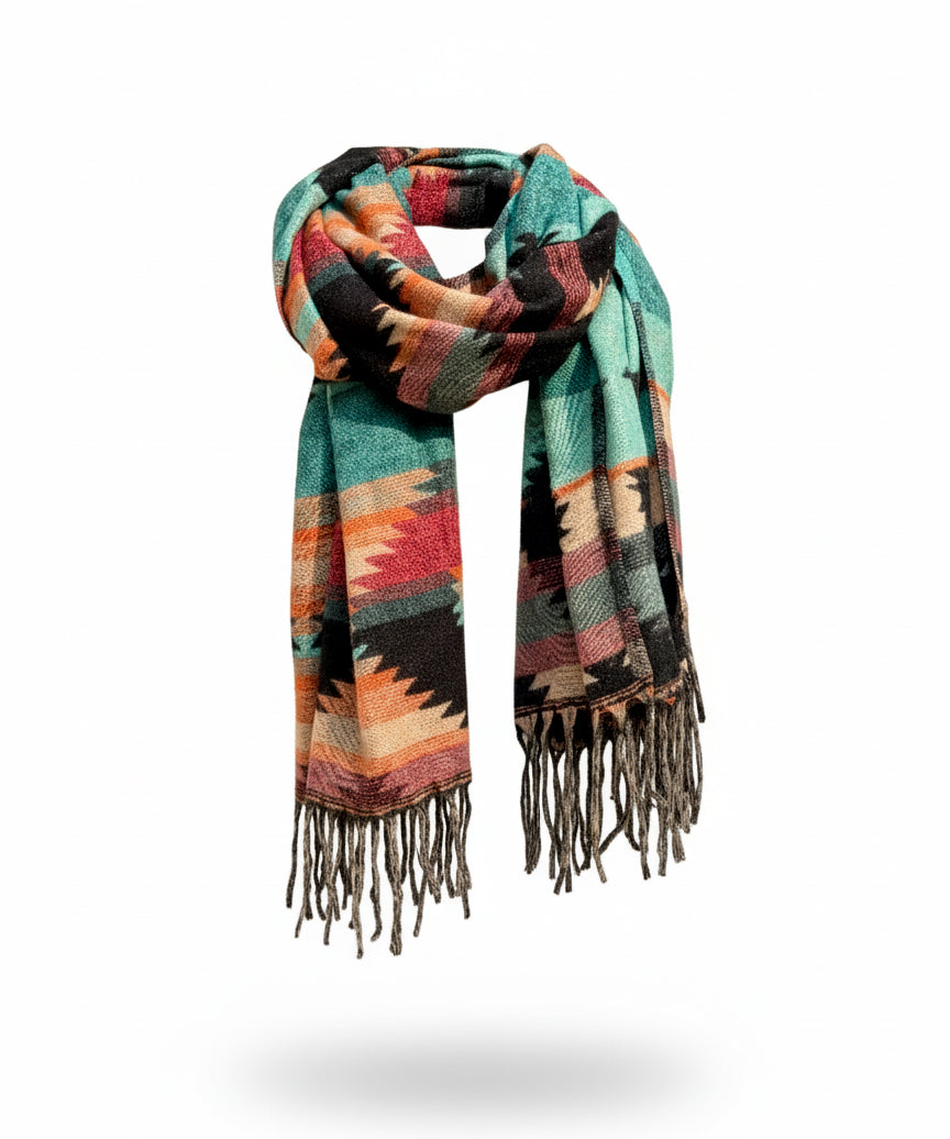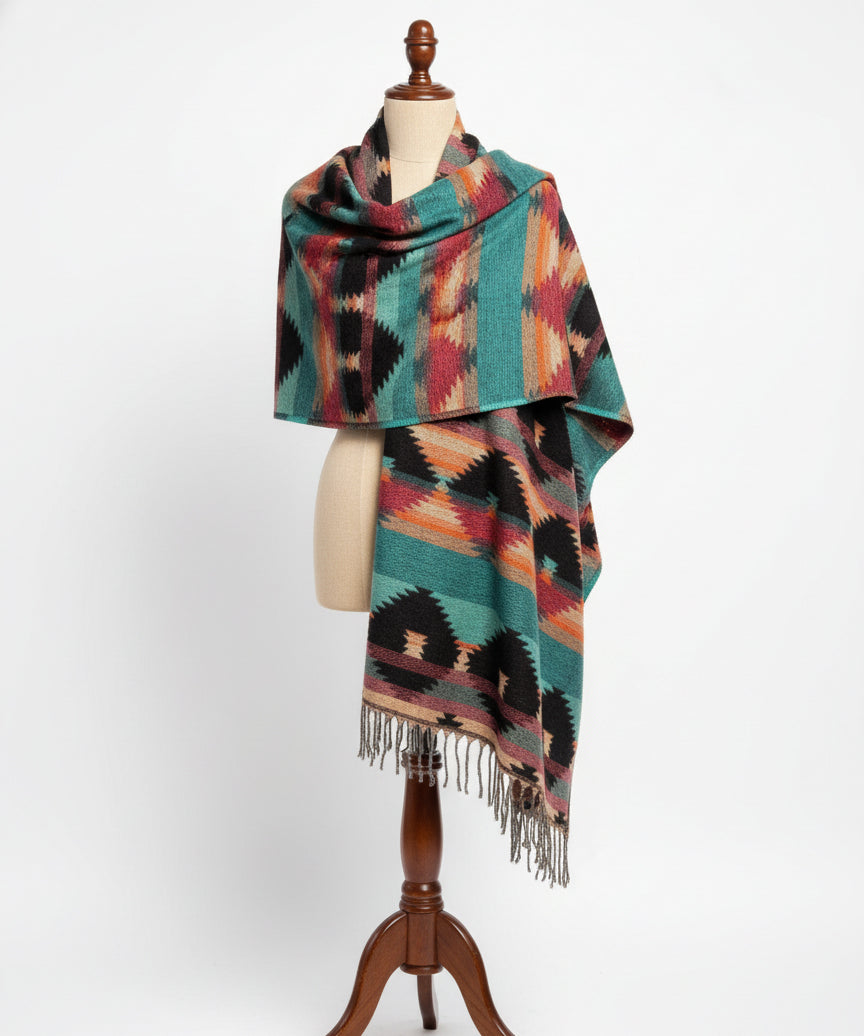 Awara Shawl - Teal Canyon & Ember Black
