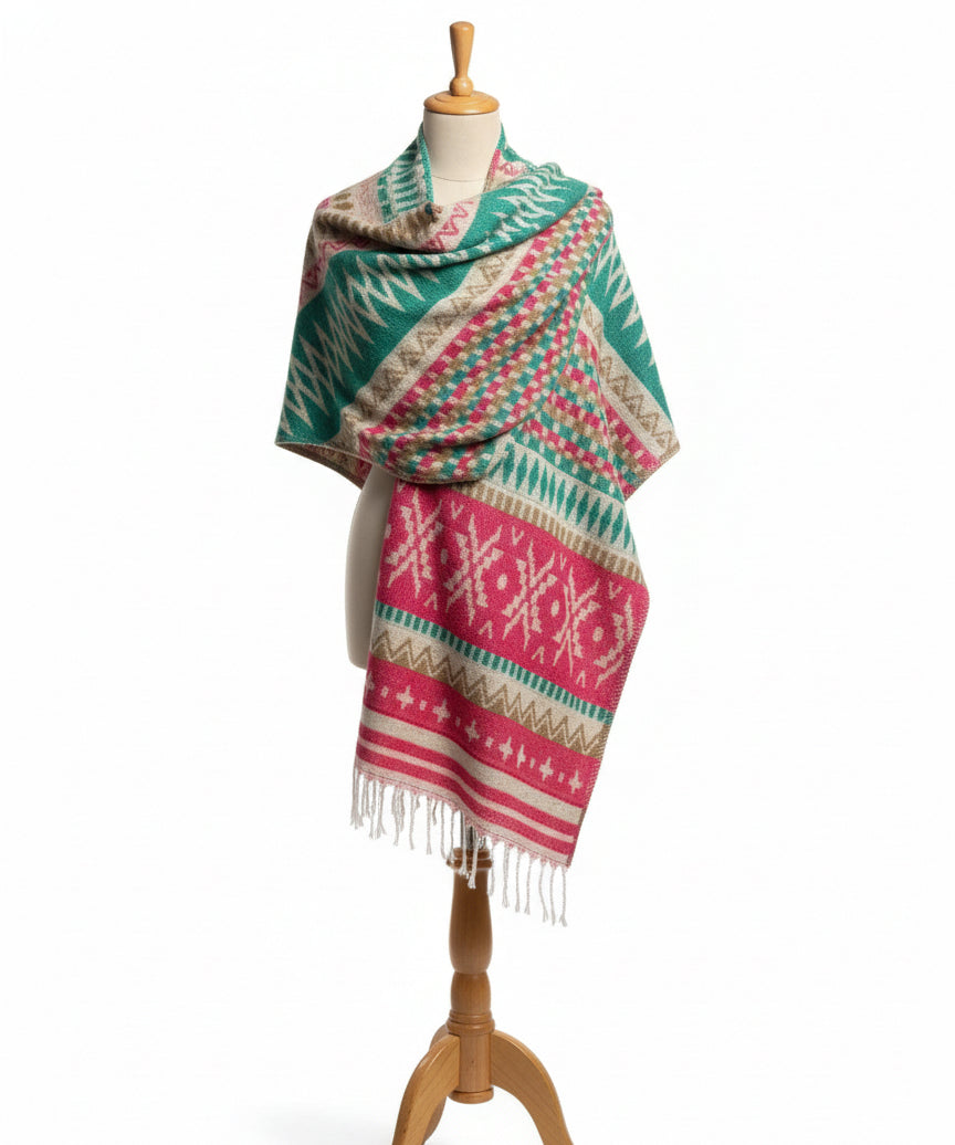 Awara Shawl - Wild Rose & Alpine Green