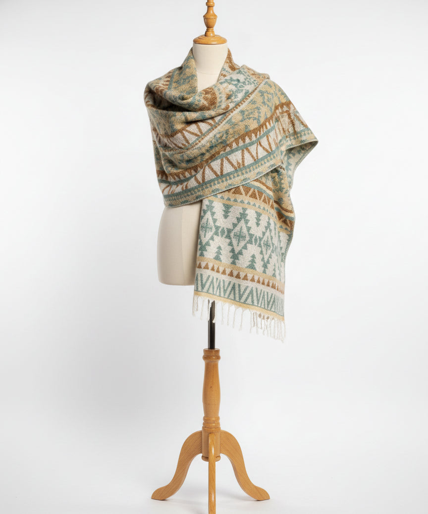Awara Shawl - Moss Trail & Golden Clay