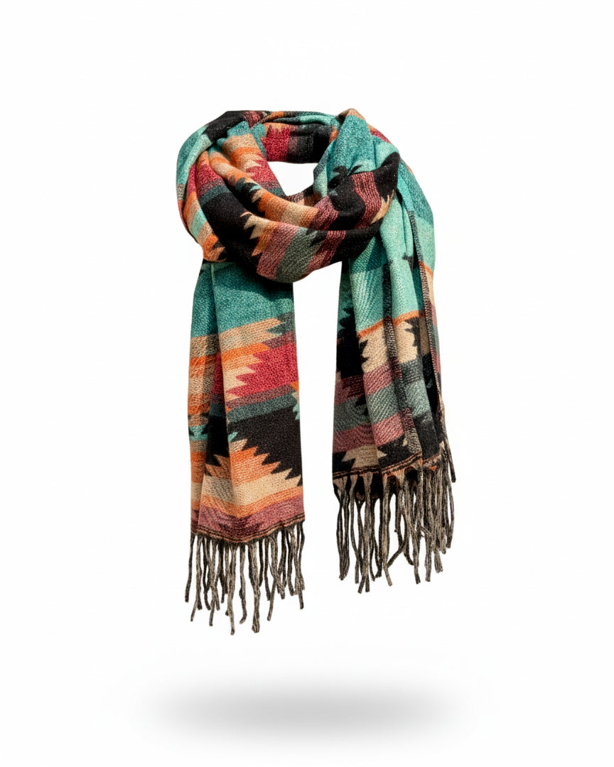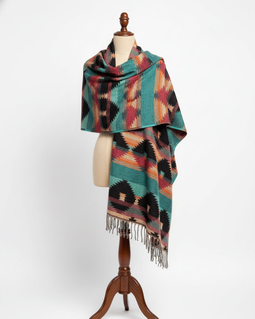 Richly textured and visually striking, it’s woven from a premium acrylic-polyester blend that’s dense, soft, and insulating. Whether you’re heading into the hills or out in the city, this shawl keeps you grounded, warm, and effortlessly stylish.