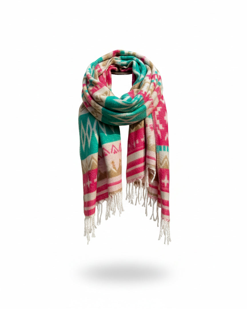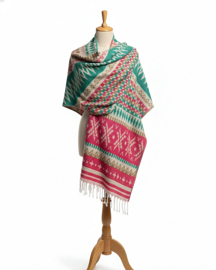Vibrant and free-spirited, the Wild Rose & Alpine Green Shawl adds a burst of energy to cold-weather layering.